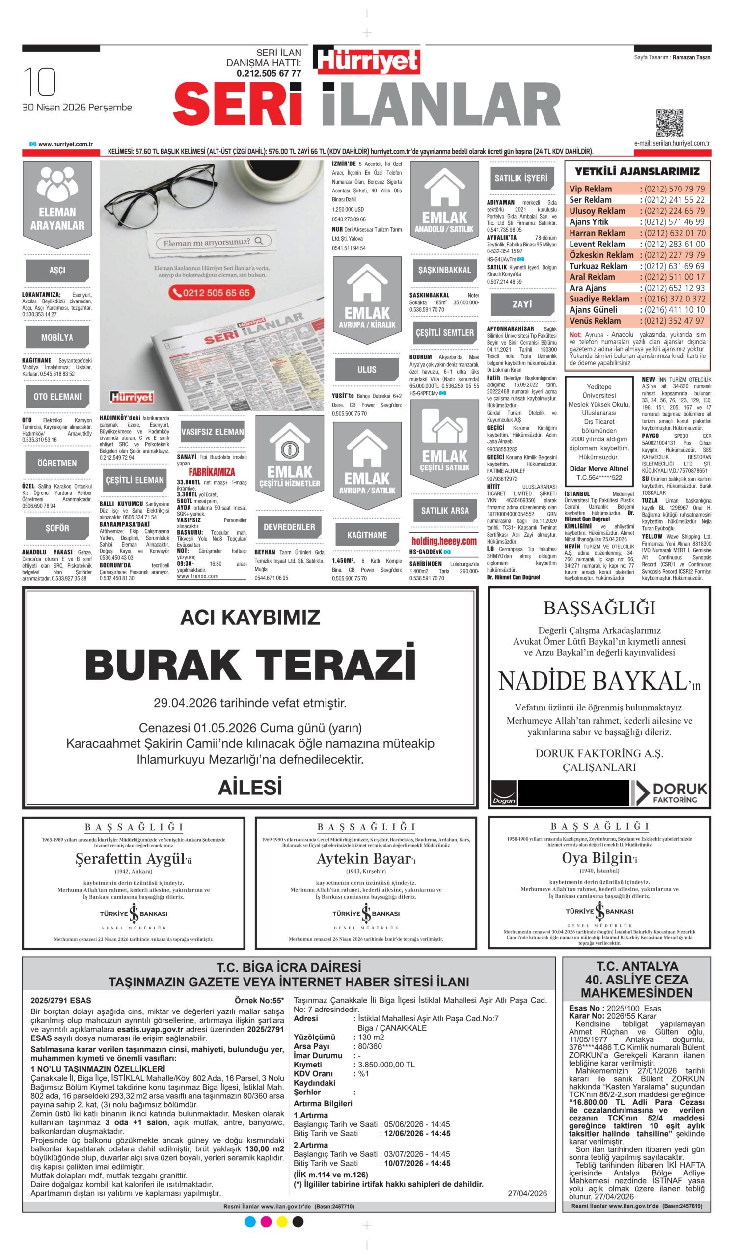 Hürriyet'e vereceğiniz ilanlarınızda grafik tasarım hizmetimiz vardır. İnsan kaynakları, Vefat ilanı, Ticari ilan vb ilan tasarımı hizmetimiz ücretsizdir.