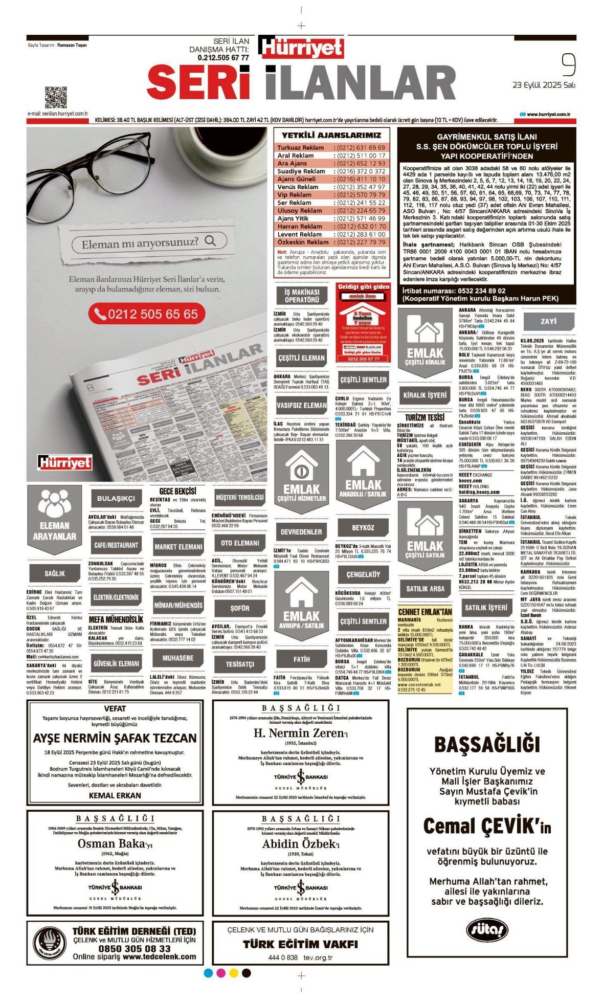 Hürriyet Bugünkü Vefat (Ölüm) – Başsağlığı – Anma – Teşekkür – Mevlit İlanları-23.9.2025