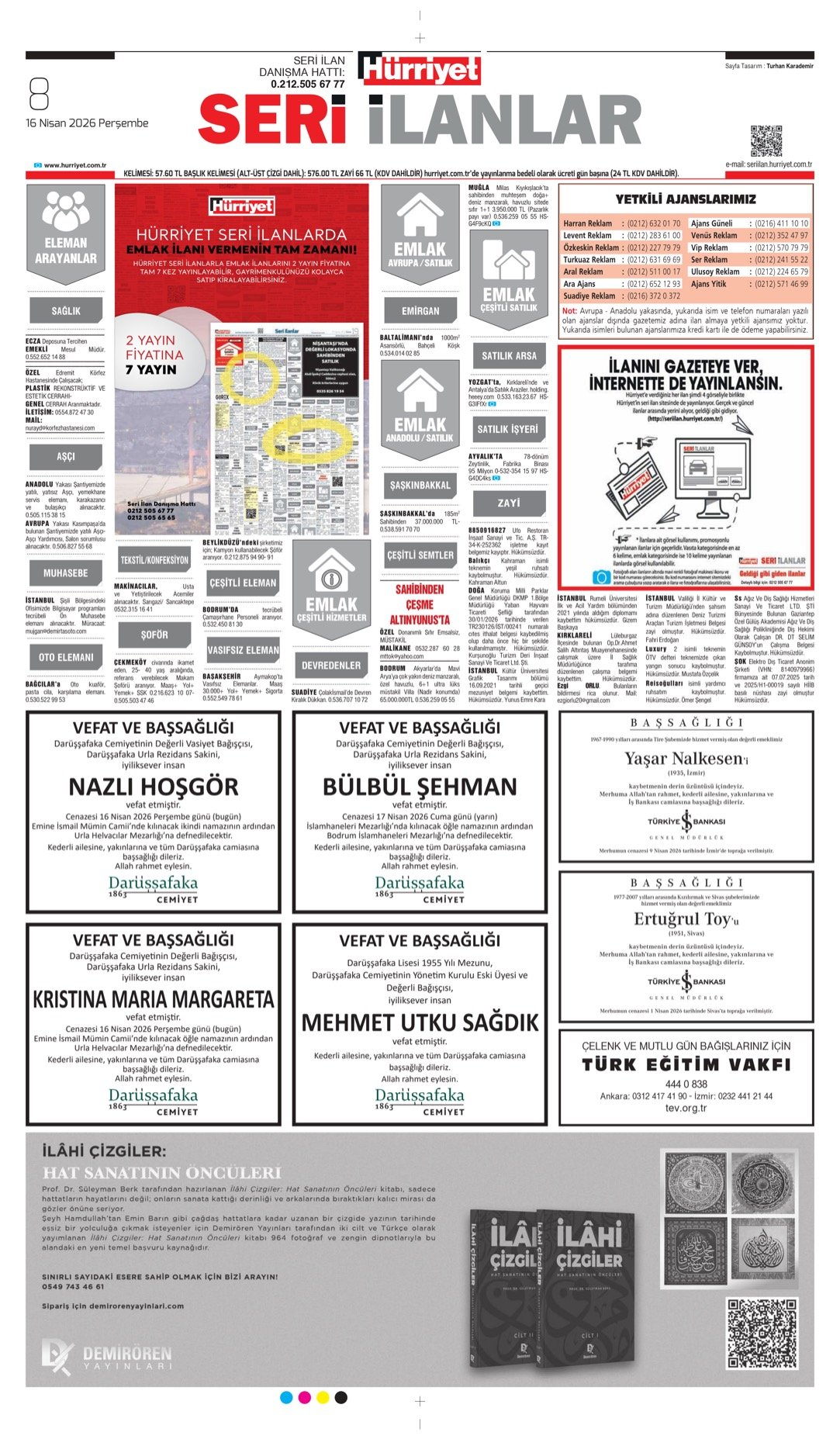 baskılarında ve diğer tüm baskılardaki ilanlar yayınlanmaktadır.