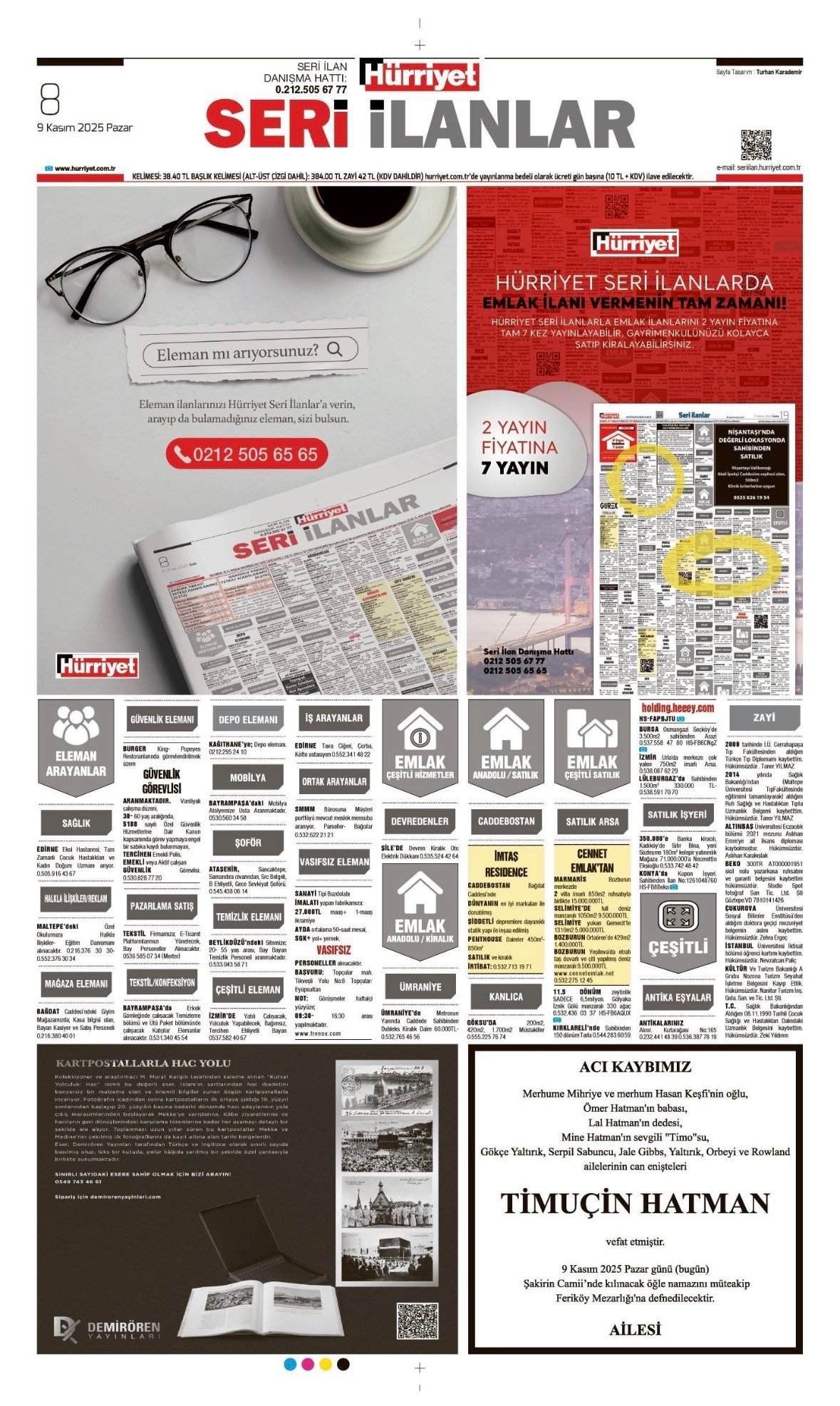 Hürriyet vefat ilanları, Ahmet Celal Biro, cenazesi 7 Kasım 2025 Cuma öğle namazına müteakip Kilyos Mezarlığı’nda toprağa verilecektir. Nurlar içinde uyusun.