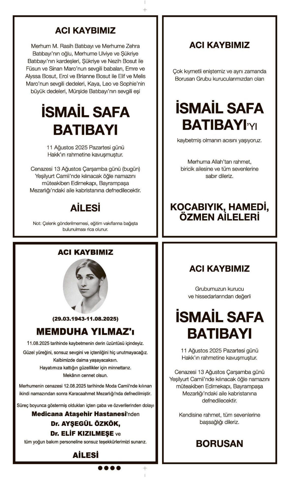 • İSMAİL SAFA BATIBAYI – VEFAT İLANI,