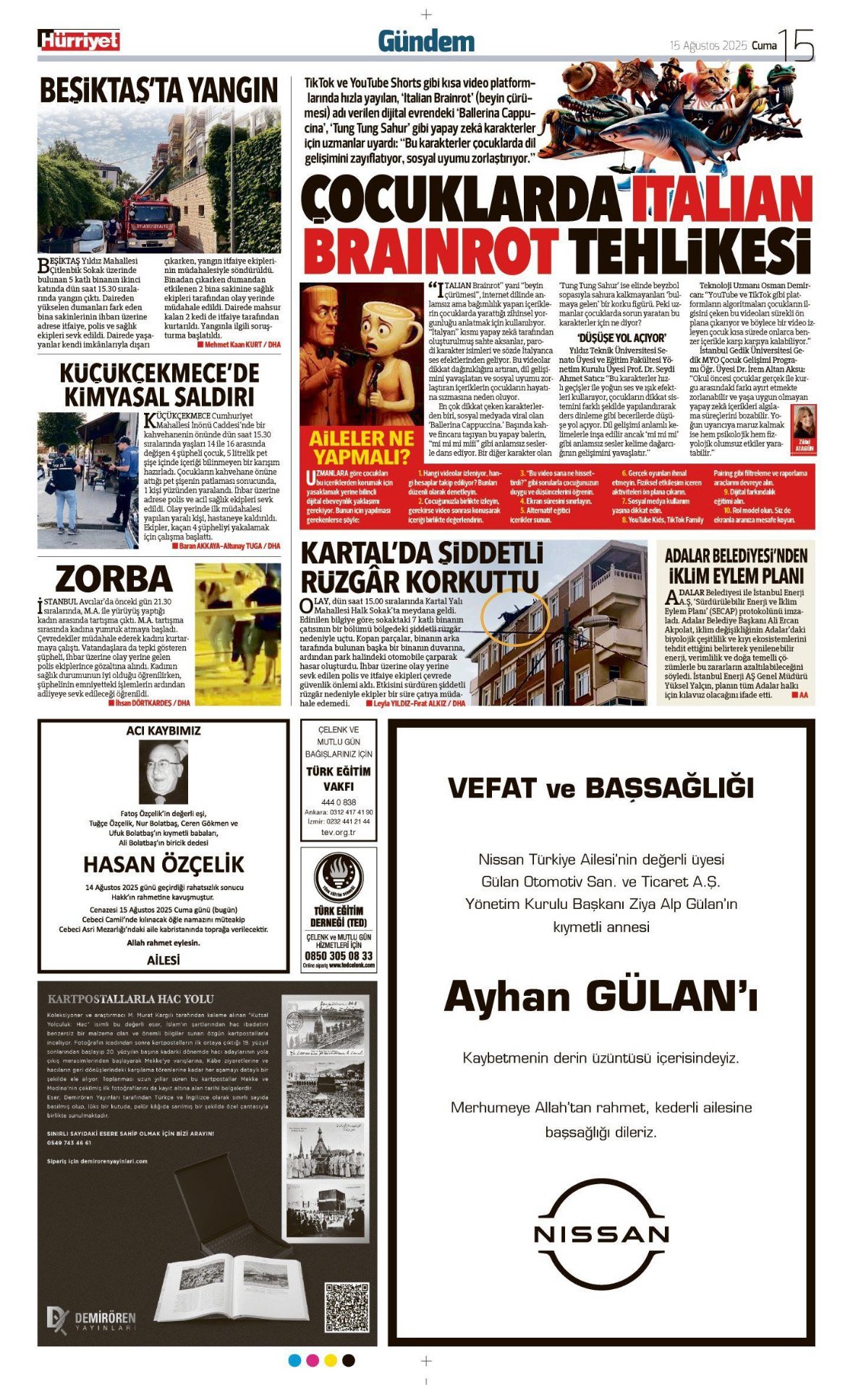 Hürriyet Bugünkü Vefat (Ölüm) – Başsağlığı – Anma – Teşekkür – Mevlit İlanları-15.8.2025