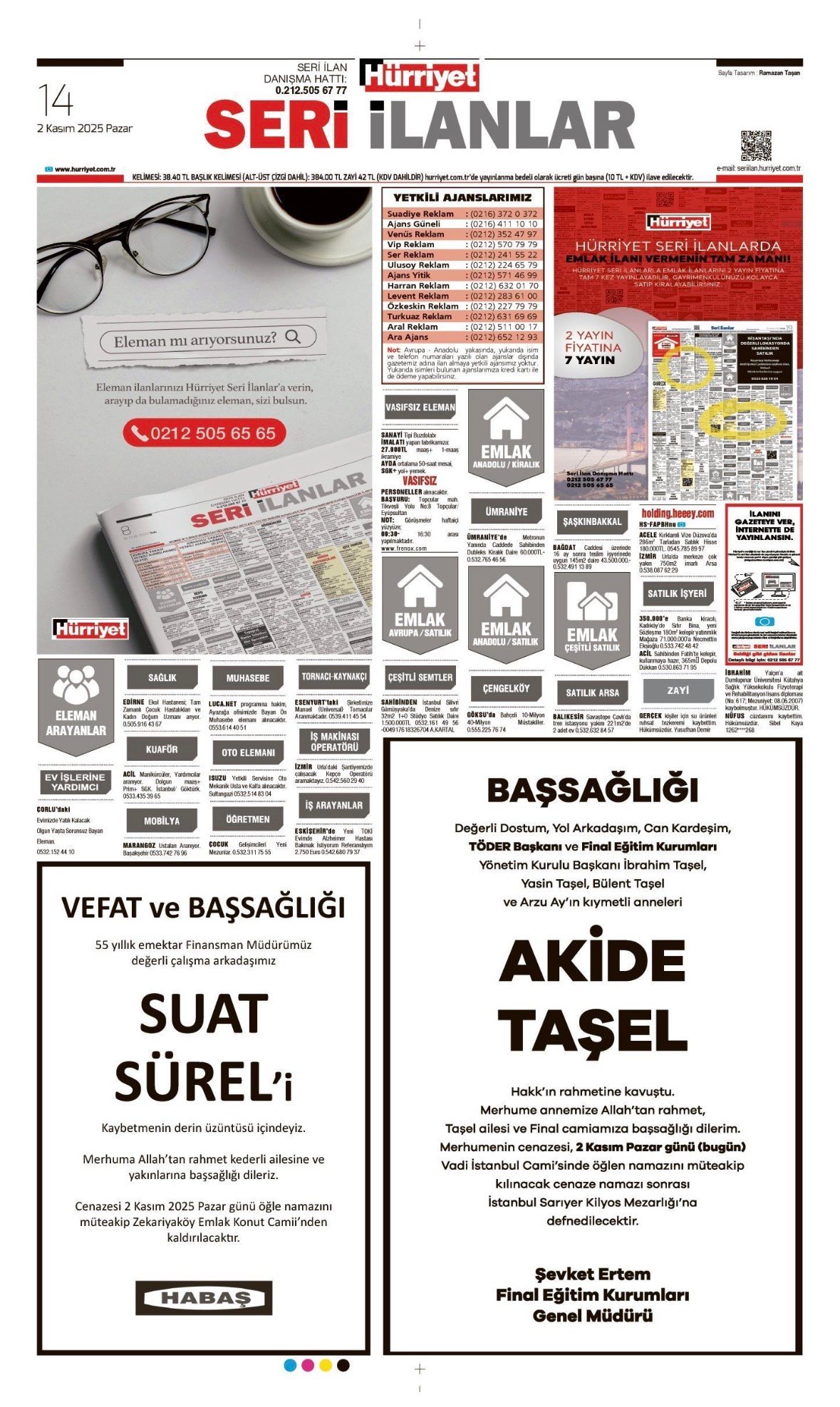 • HÜRRİYET VEFAT  İLAN SERVİSİ