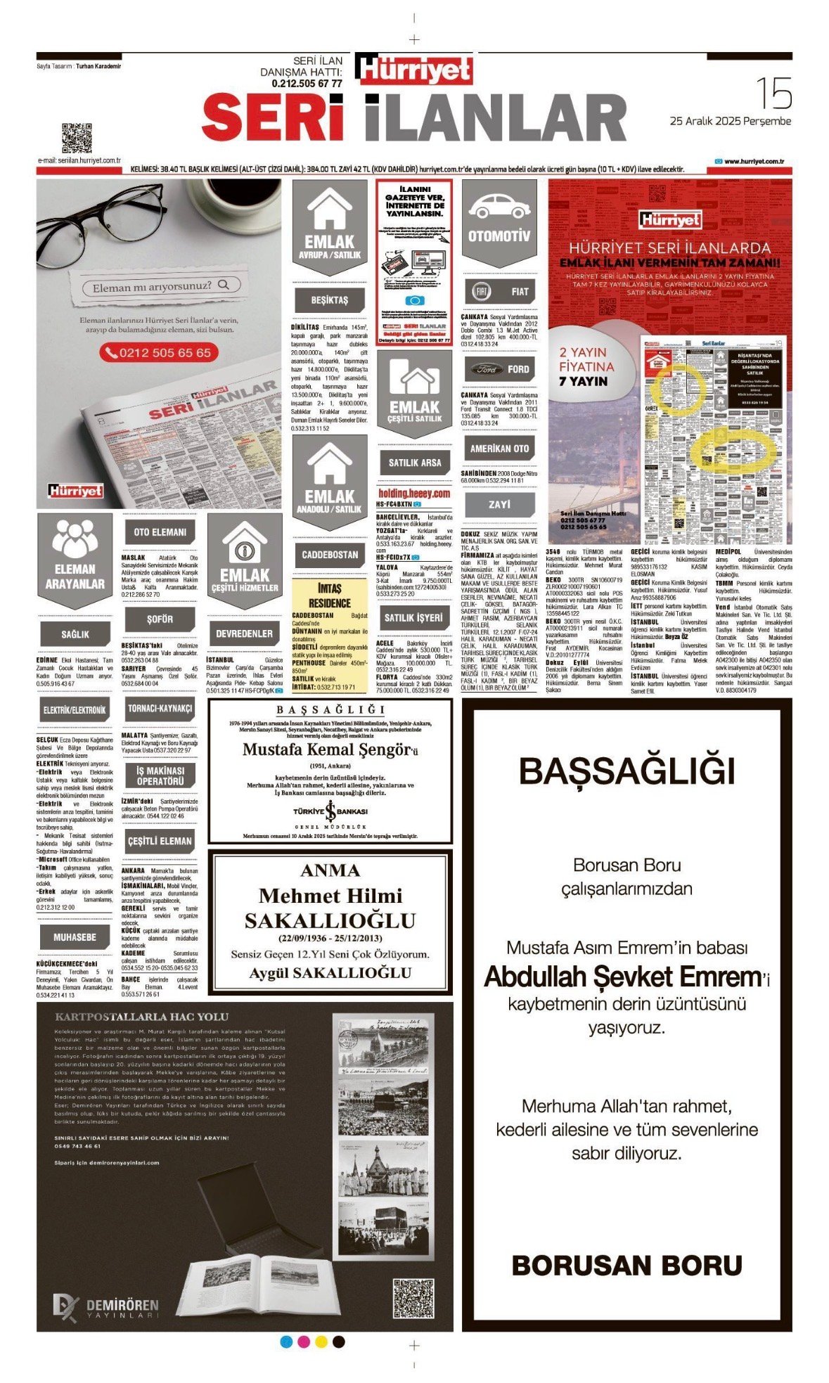 Hürriyet Bugünkü Vefat (Ölüm) – Başsağlığı – Anma – Teşekkür – Mevlit İlanları-25.12.2025