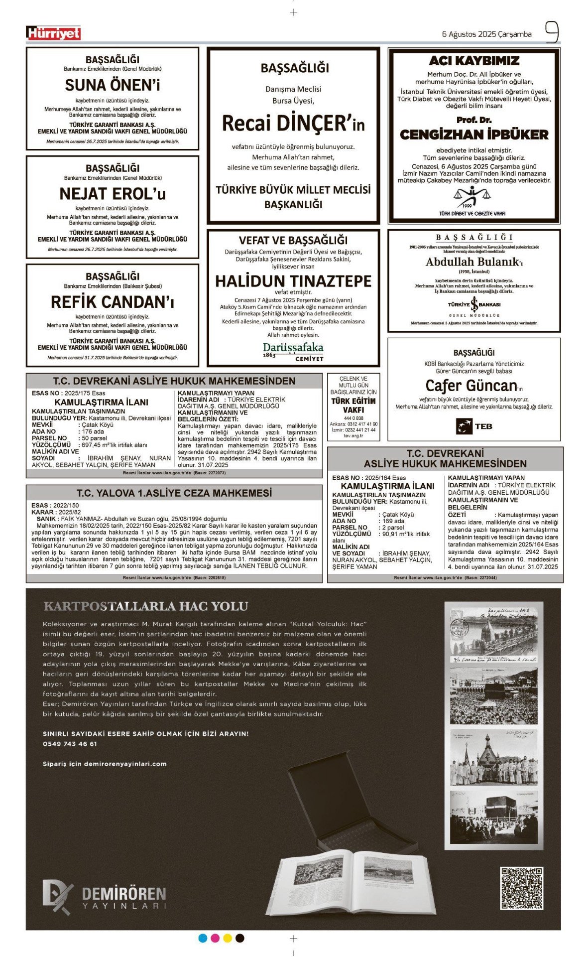 Hürriyet Bugünkü Vefat (Ölüm) – Başsağlığı – Anma – Teşekkür – Mevlit İlanları-6.8.2025