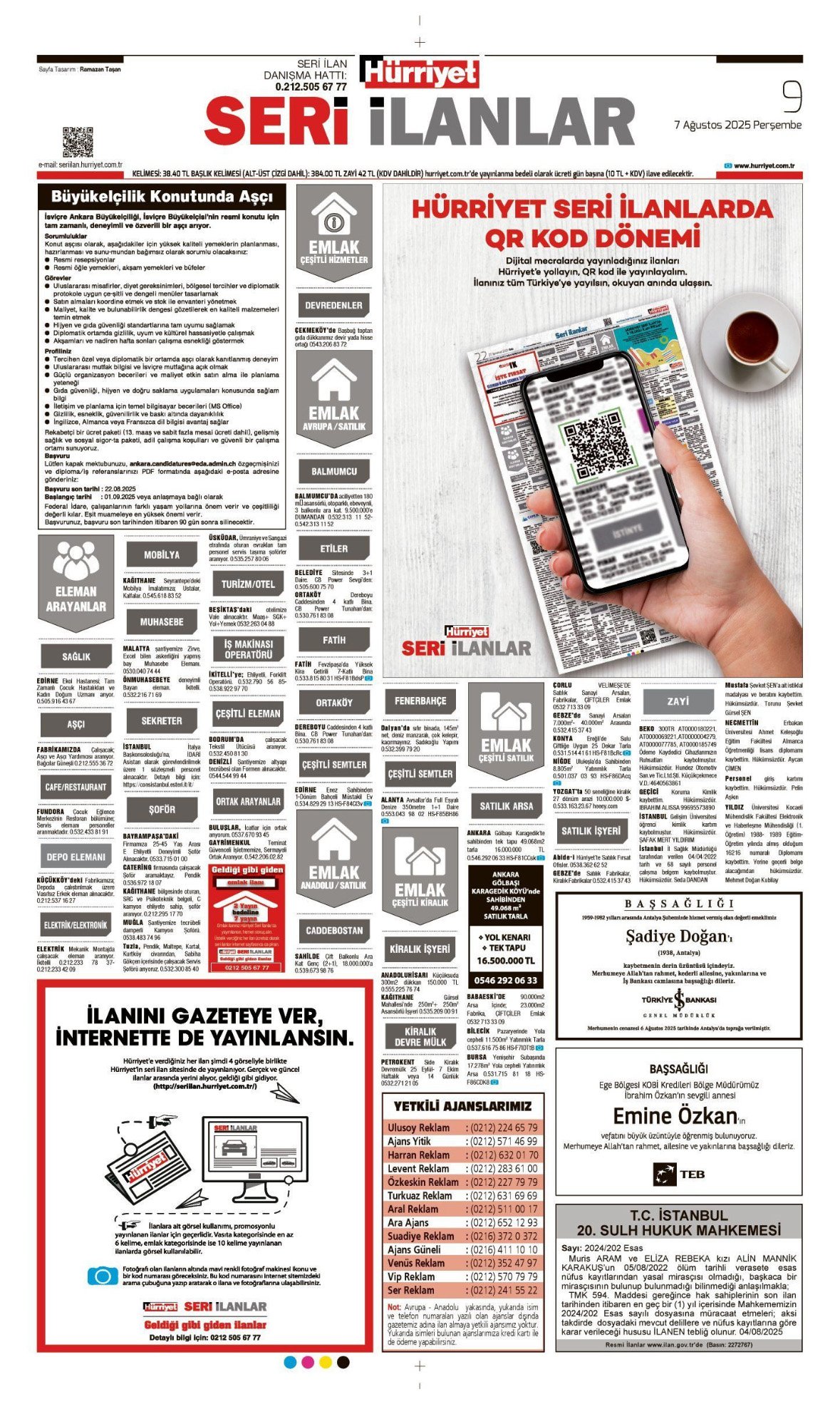 Hürriyet bugünkü vefat ilanlar, Vefat- Başsağlığı- Anma ve Teşekkür ilanı vermek için 0212 230 60 00 – 0533 504 01 01 (7/24) bize ulaşın.